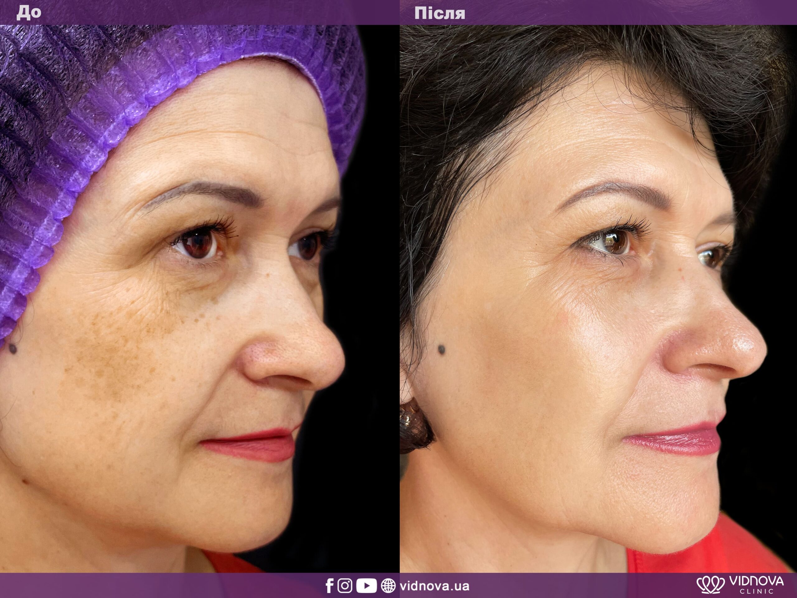 У клініці Vidnova фотоомолодження проводиться на сертифікованому обладнанні, яке дозволяє працювати з різними проблемами: пігментні плями, судинна сітка, розширені пори, тьмяний колір обличчя, дрібні зморшки, нерівний рельєф. Під час процедури на шкіру подається серія спалахів світла, які проникають у тканини без пошкодження поверхні. Світлова енергія вибірково поглинається меланіном і гемоглобіном, руйнуючи пігмент і капіляри, які формують дефекти, а також запускає оновлення клітин.