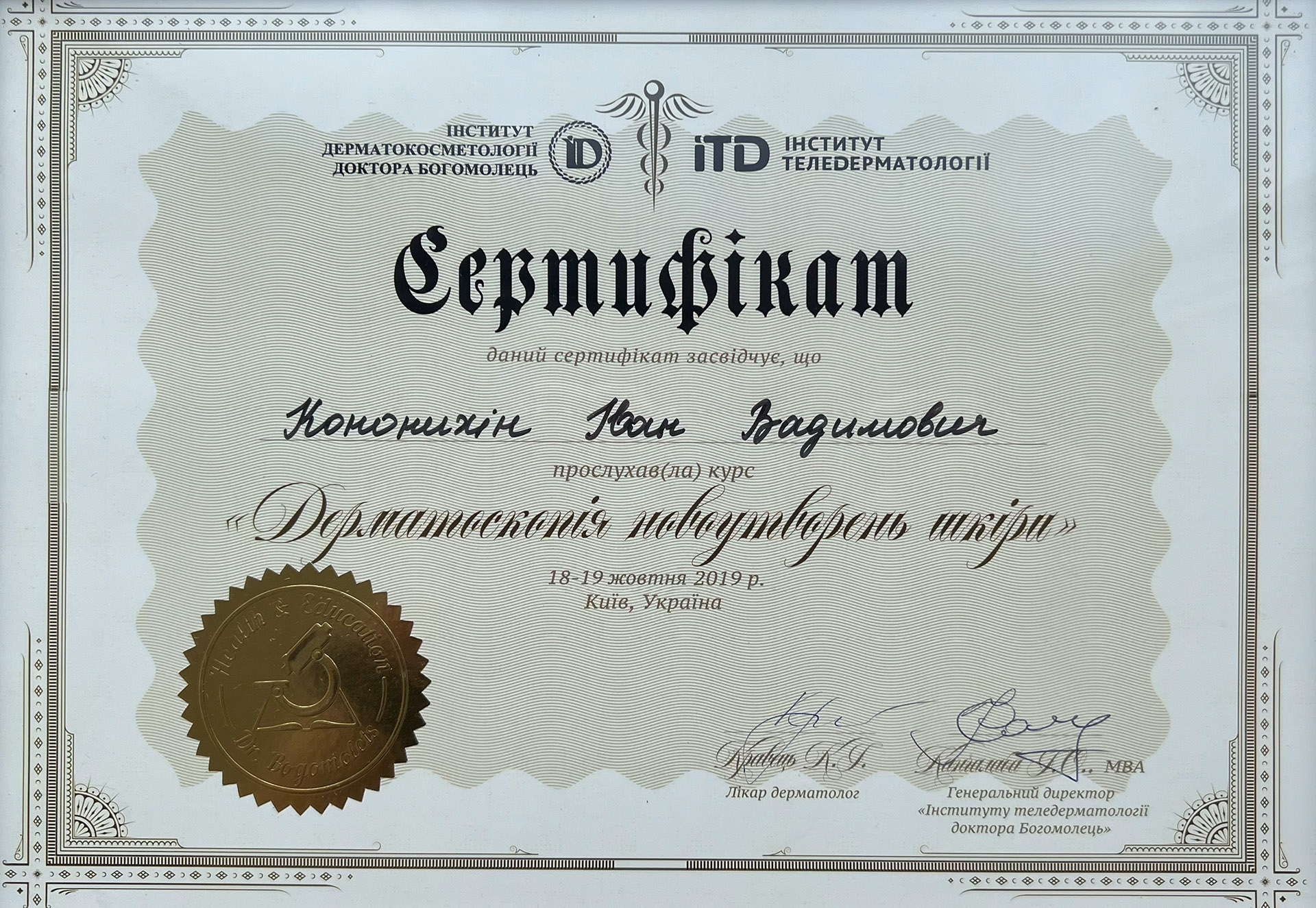 - 2019 р. – Дерматоскопія новоутворень шкіри
