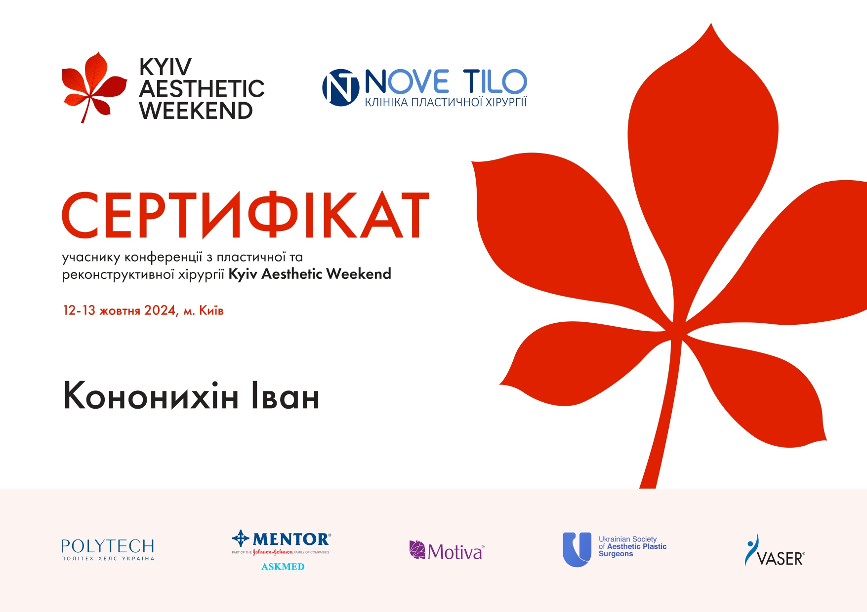 - 13 жовтня 2024 р. – участь у Kyiv Aesthetic Weekend