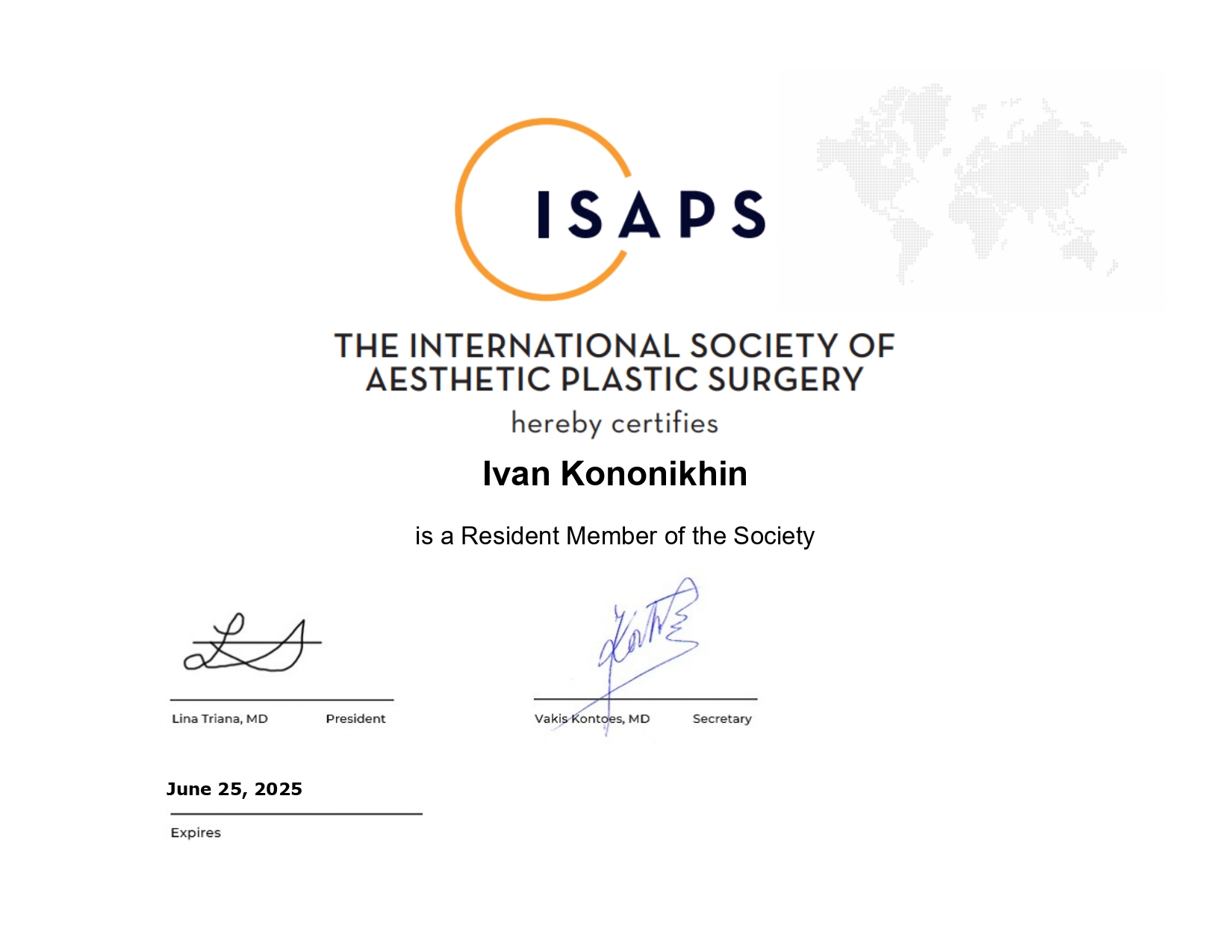 Сьогодні Іван Вадимович – резидент Українського товариства естетичних пластичних хірургів, резидент міжнародної спільноти пластичних хірургів ISAPS, резидент American Society of Plastic Surgeons.