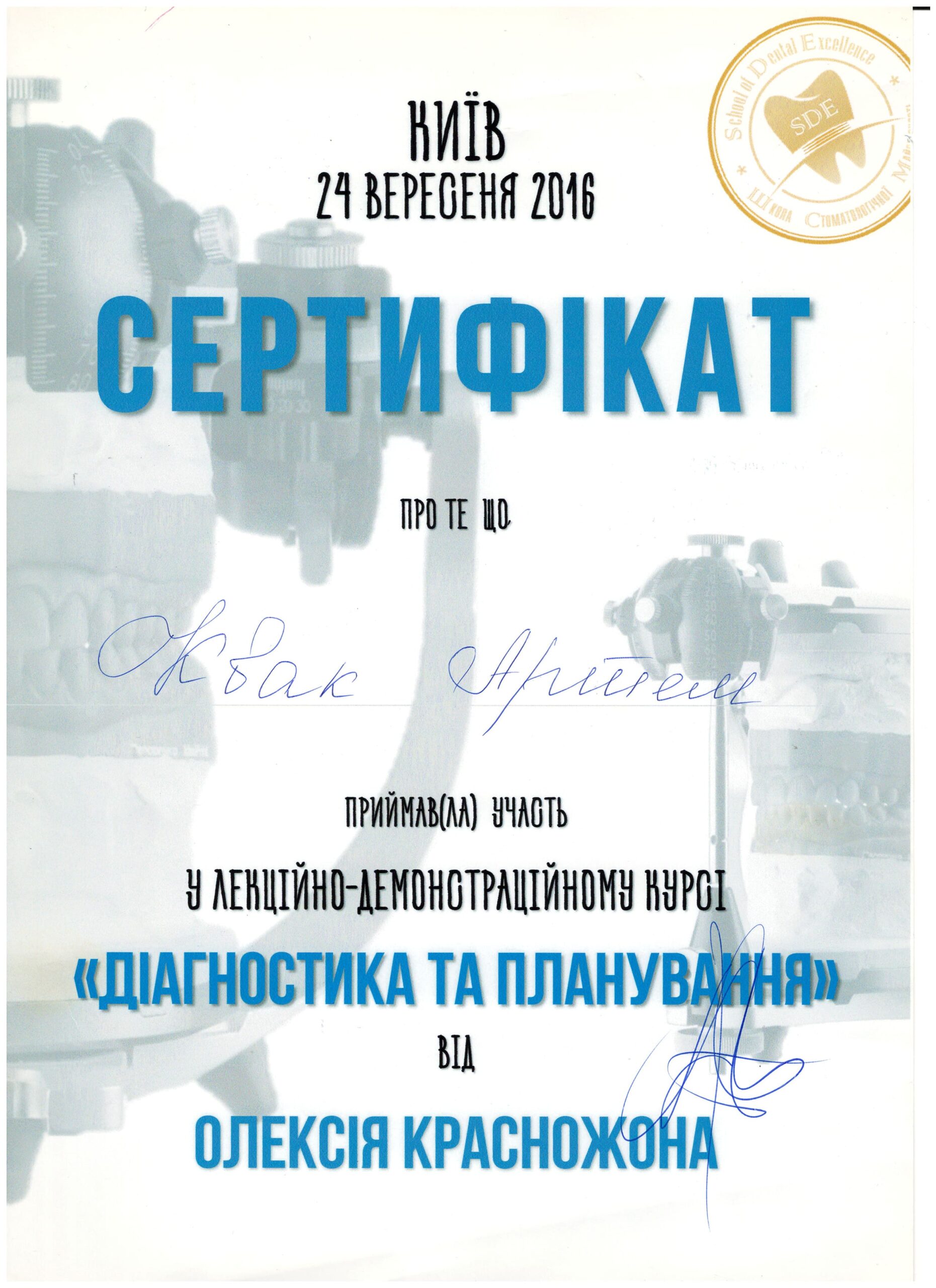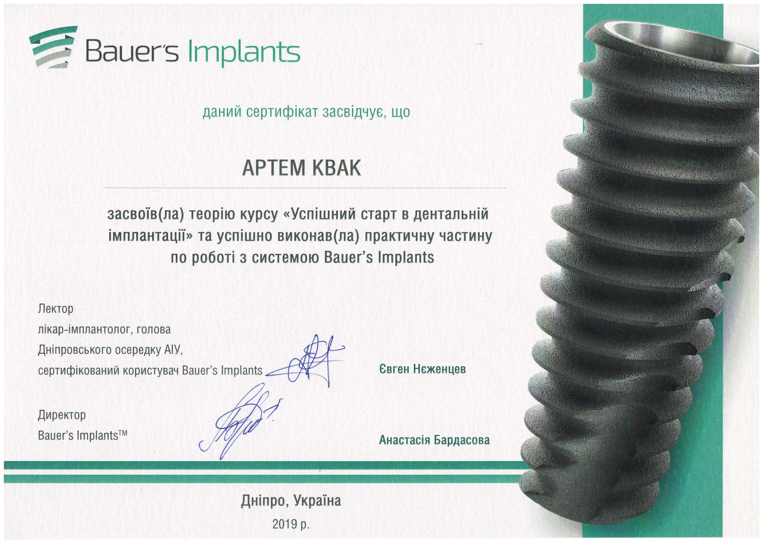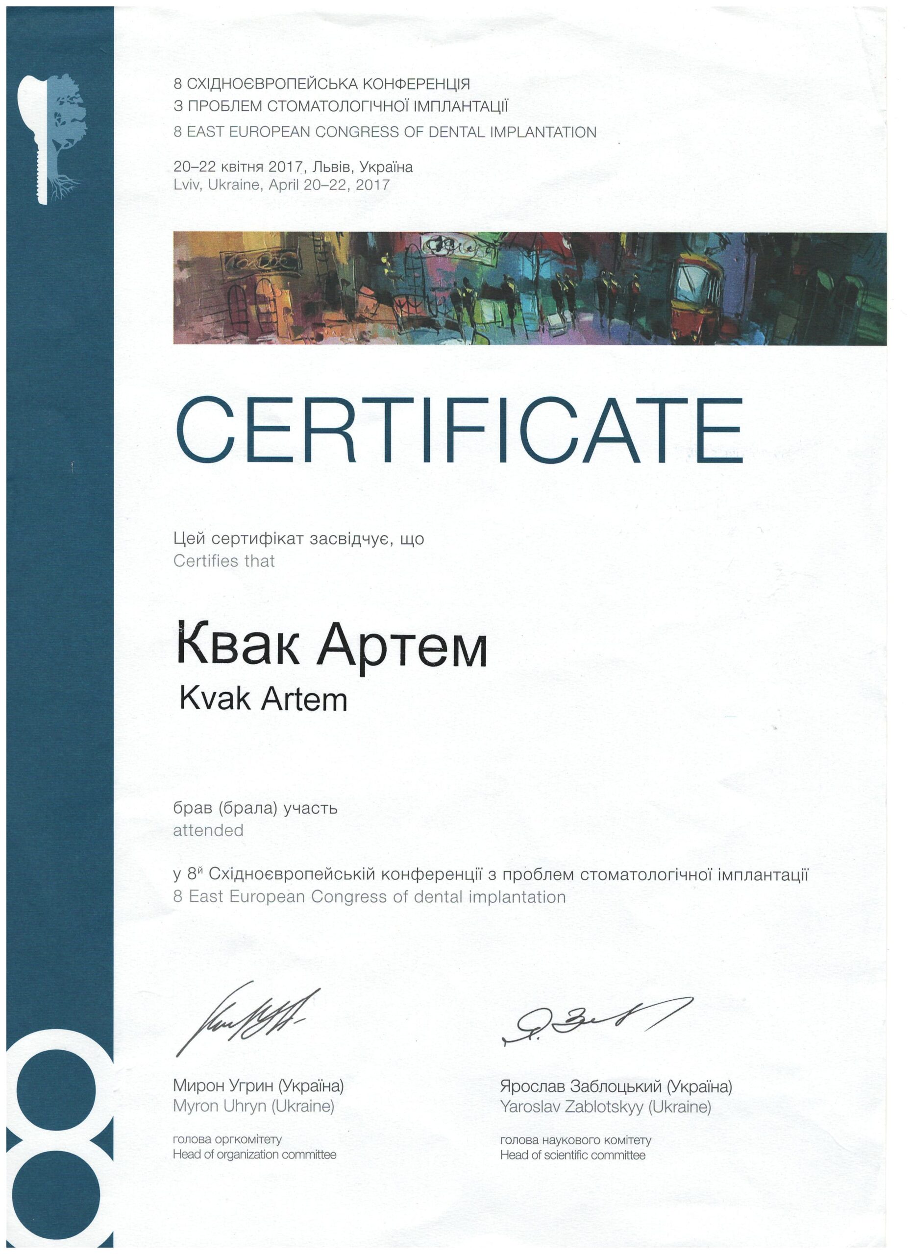 - У 2024 році Артем Олександрович освоїв спеціалізацію з хірургічної стоматології на базі Запорізької державної медичної академії післядипломної освіти.