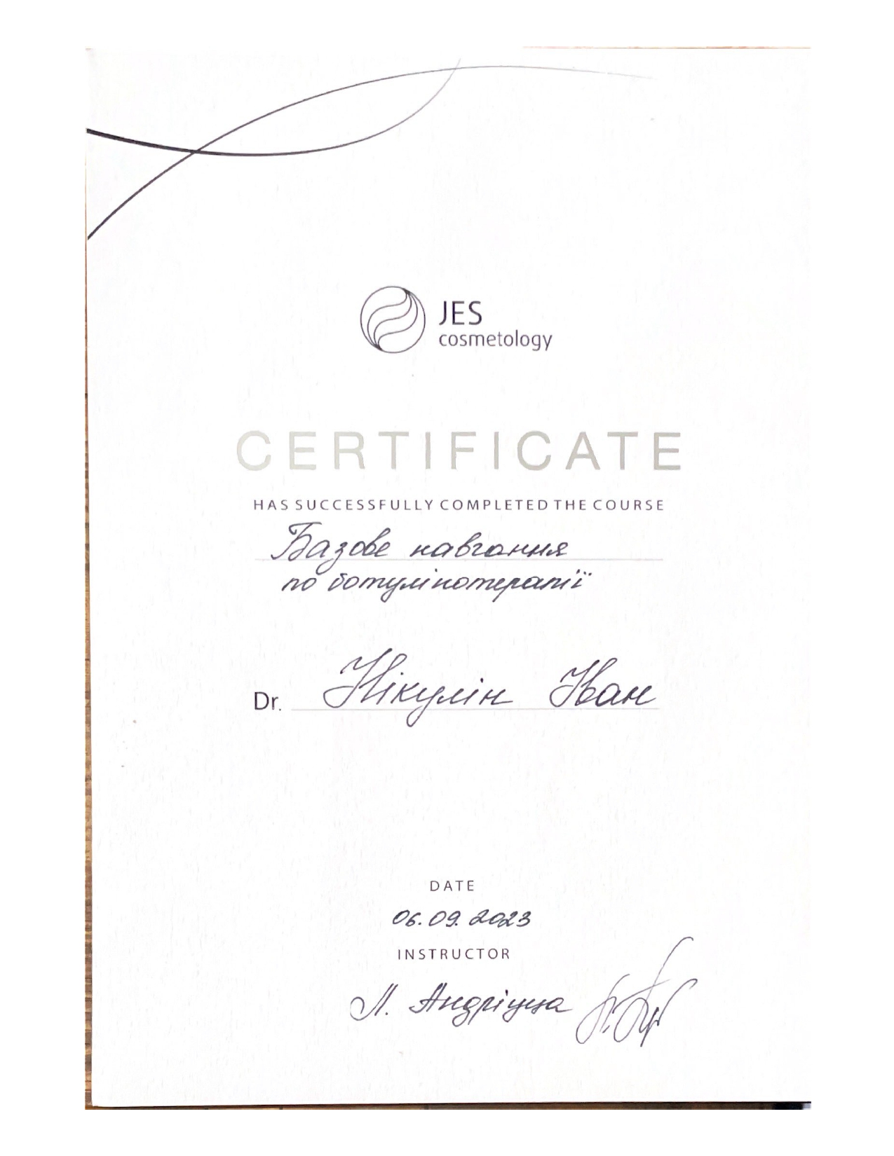 - У 2022 році отримав спеціальність “Дитяча оториноларингологія”.