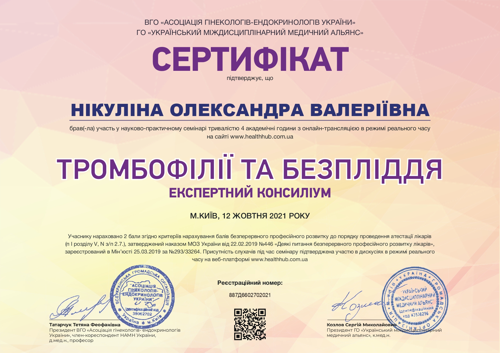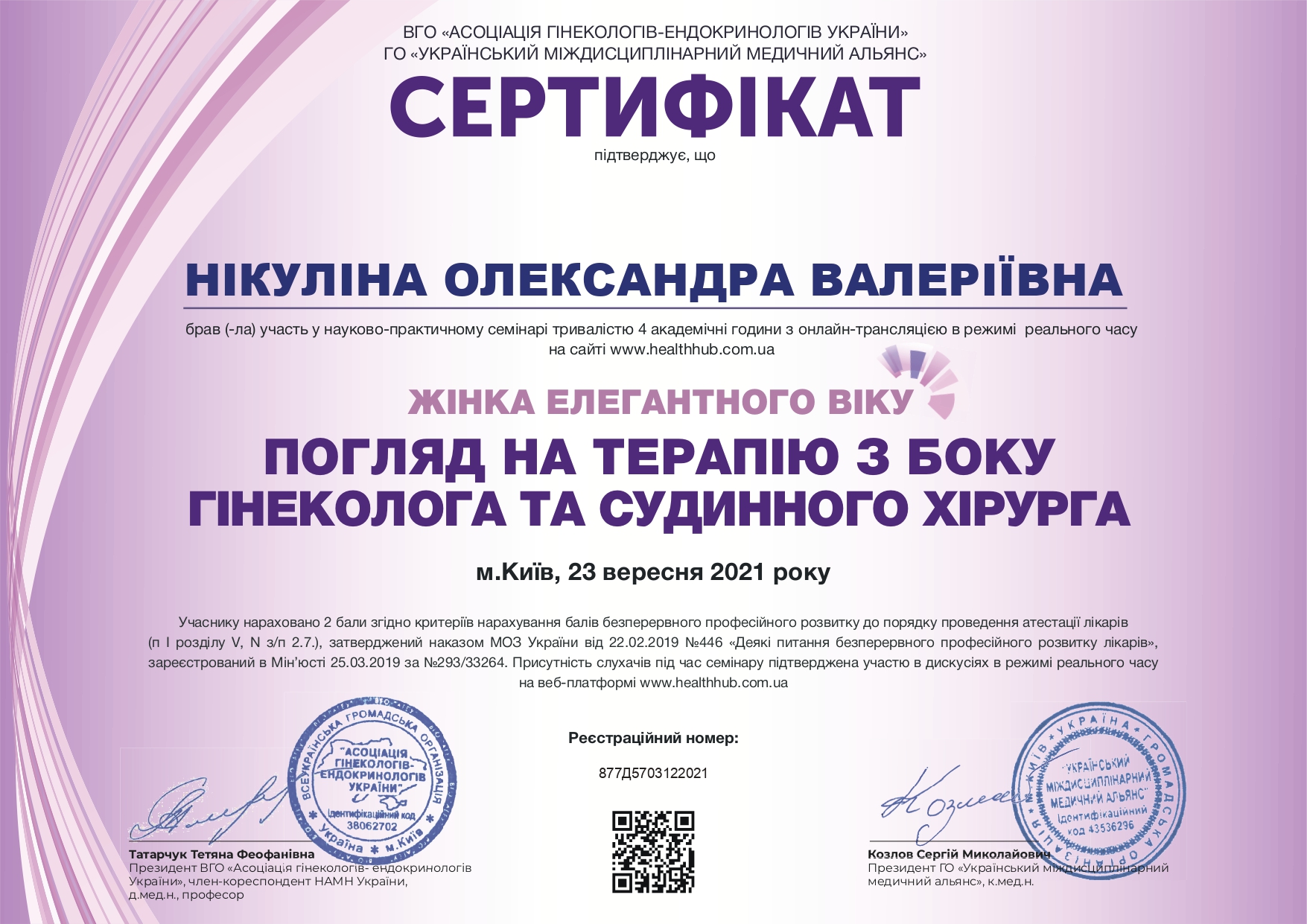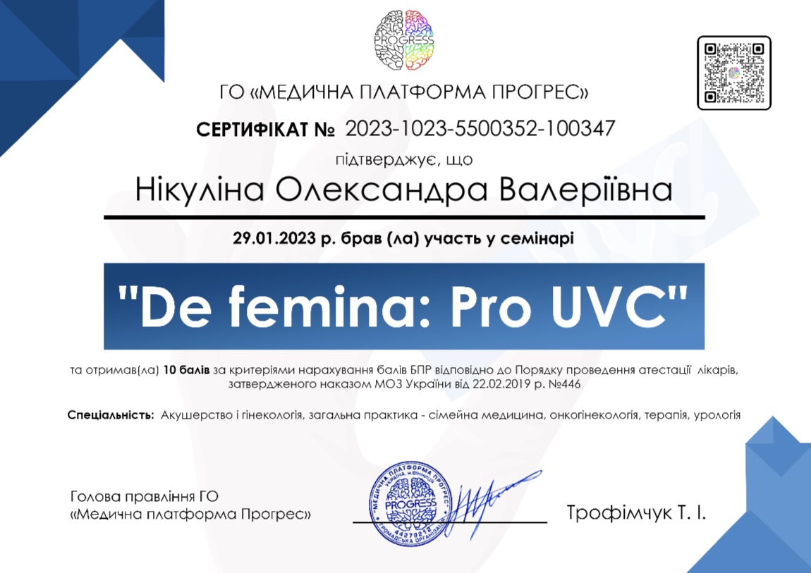 - Практично – симуляційний тренінг з гістероскопії «Українська Гістероскопічна Асоціація» (Івано- Франківськ, 2023р)