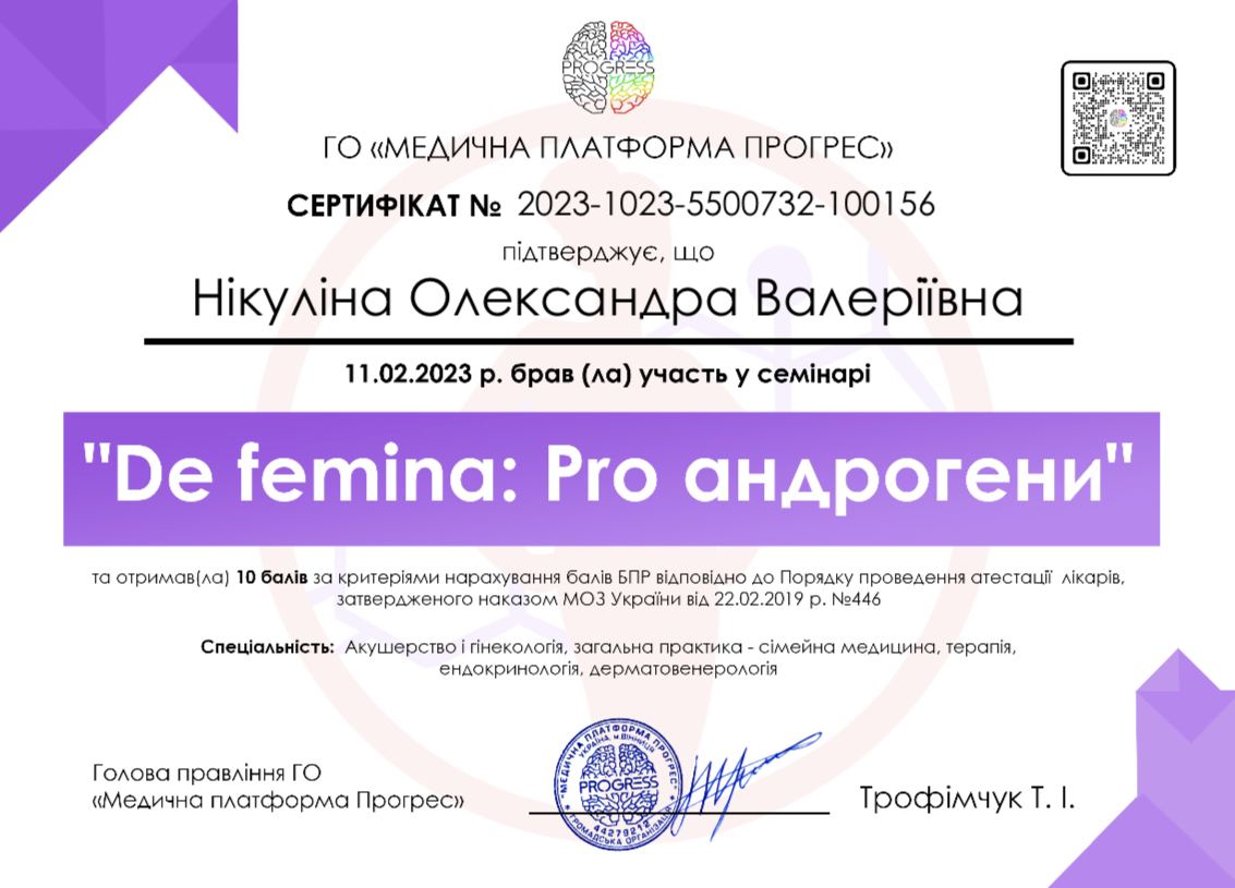 - Курс “Продуктивна Репродуктологія” за участю міжнародних спікерів (Одеса, 2023р)