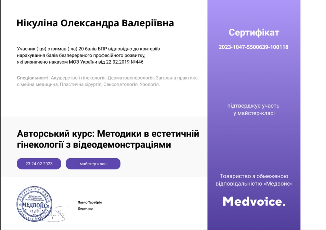 - Методики в естетичній гінекології з відеодемонстраціями (Одеса, 2023р)