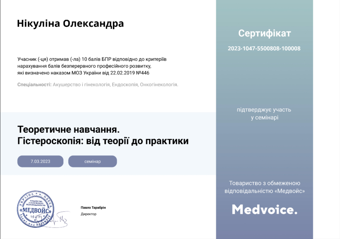 - Гістероскопія : Від теорії до практики (Одеса, 2023р)